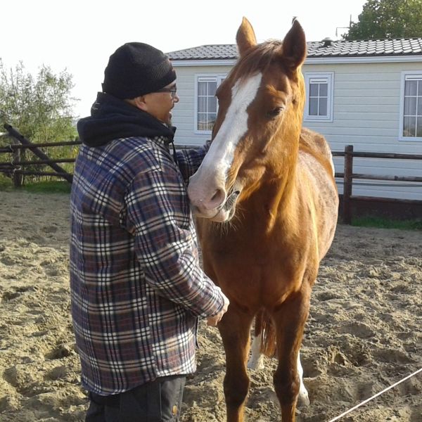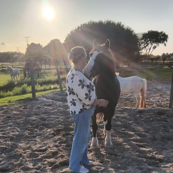 'Door de paardencoaching weet ik dat ik (soms) moet (mag...) blijven staan waar ik sta en niet alleen maar mee moet bewegen met de ander. Het paard liet zien dat ik, ook al is hij veel groter en sterker, mag blijven staan, grenzen aan kan/mag geven en de leiding mag nemen. Uiteindelijk kwam het paard weer naar me toe en accepteerde me toch wel, een hele bijzondere ervaring die ik niet snel zal vergeten.' Annet