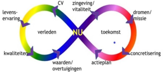 Het vertrekpunt is het biografiegesprek waarbij verleden, heden en toekomst met elkaar worden verbonden.